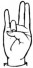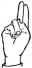 На ћирилици написано ЕЛЕНА ЦАЦАНОВИЋ састоји се из 14 слова [?]. Исписано ћириличном једноручном азбуком за глувонеме: